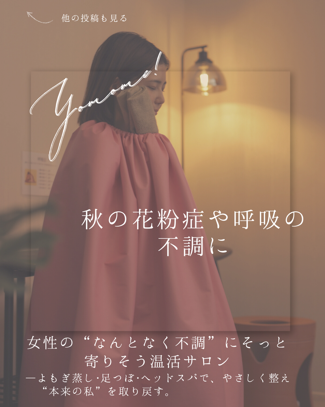 よもぎの蒸気で体を芯から温めることで、冷えによる巡りの滞りを和らげ、深い呼吸をサポートしてくれる心地よさを実感される方も多いです。